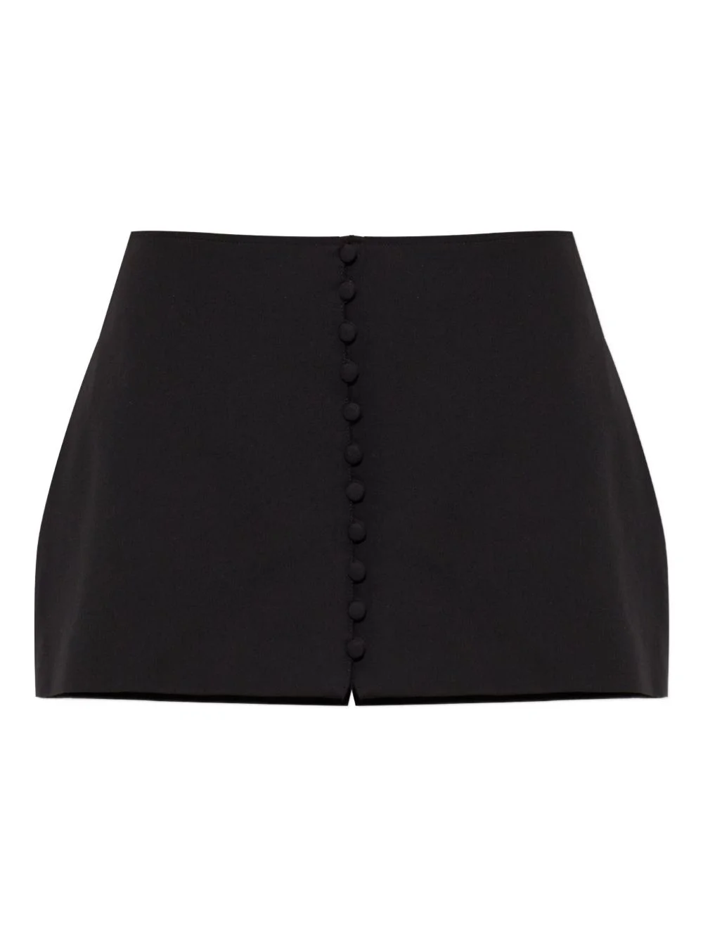 button-front shorts Highlights - Black - Button fastening - Straight hem - Flat front Imported Composition Polyester 60%, Viscose 27%, Elastane 13% Washing instructions Read Manufacturer Guidelines