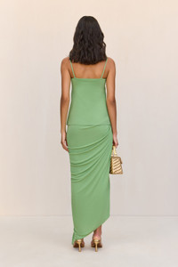 An effortless white knit top featuring a sweetheart neckline and front slit cutout. — Knit fabrication — Spaghetti straps — Sweetheart bow neckline — Open front slit — Wear with Aeris Skirt SIZE & FIT NOTES Model is 5'10" and wearing a size S COMPOSITION AND CARE 83% VISCOSE 17% NYLON