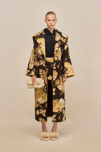 A lush wool blend coat with an exaggerated lapel, crafted in an eye catching floral print. — Wool blend — Front button closure — Exaggerated lapel — Wide sleeve SIZE & FIT NOTES Model is 5'10" and wearing a size Small COMPOSITION AND CARE 42% VIRGIN WOOL 37% POLYESTER 21% ACRYLIC