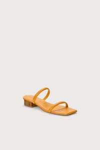 A sandal with soft Nappa leather straps at the bridge and toe featuring a bamboo wood-effect heel. — Nappa leather sole and straps — Straps at bridge and toe — Bamboo wood-effect heel — Rubber sole FIT NOTES HEEL HEIGHT: 1" COMPOSTION AND CARE UPPER: 100% COW LEATHER, SOLE: 100% RUBBER, HEEL: 100% ABS