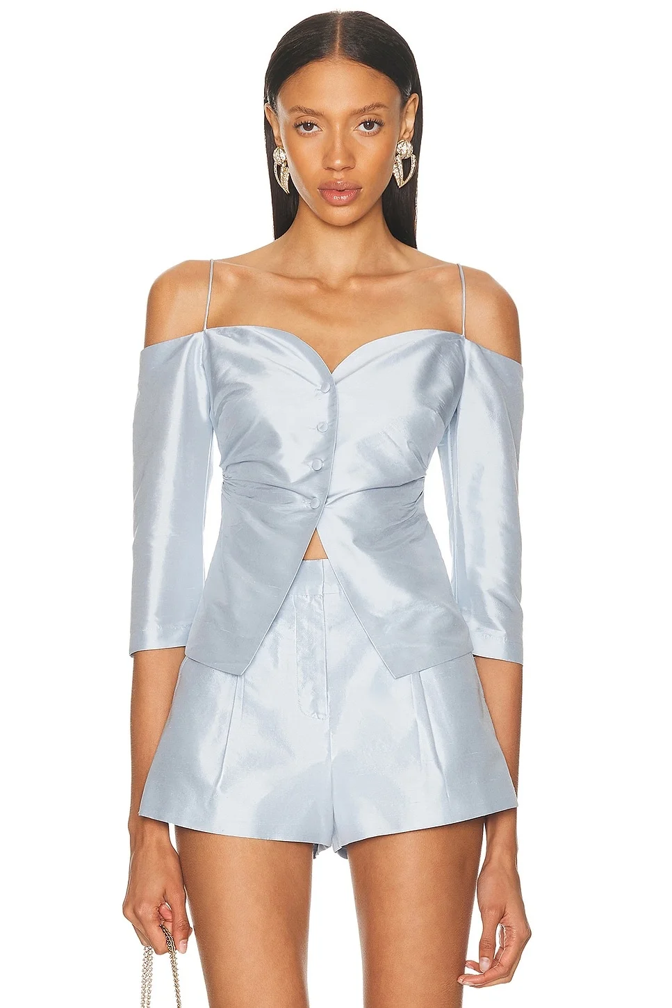 Details - 100% silk - Dry clean only - Front button closure - Off the shoulder styling - Lightweight satin fabric - Item not sold as a set - Made in China - Our Style No. GAIA-WS154 - Manufacturer Style No. TP1493DP2999