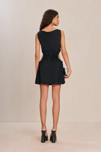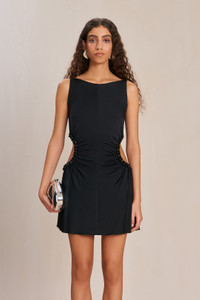 A mini-length dress featuring side cutouts accented with tonal beads. — Mini length — Side waist cutouts — Adorned with tonal beads — Central back zipper SIZE & FIT NOTES Model is 5'9" and is wearing a size 4 COMPOSITION AND CARE 93% VISCOSE 7% SPANDEX