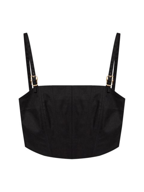 Loren crop top Highlights - Sand beige - Rear buckle fastening - Adjustable shoulder straps - Square neck - Open back Imported Composition Cotton 100%