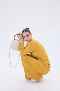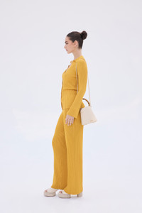 The Lynx Top is a collared knit with button closures down the front. The sleeves widen at the wrist with small slits to match the comfortable, yet chic profile of this top. Pair with the Jada Knit Pant to complete the look. FIT NOTES Model is 5'9" and is wearing a size Small Length: 23 1/2" Functional center front buttons Stretchy ribbed knit Slight bell sleeves Small slits at sleeve opening COMPOSTION AND CARE 65% Rayon, 35% Nylon