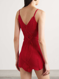 EDITORS'NOTES Cult Gaia's 'Marlow' dress is artfully stitched to depict a flower - note the petal-like details along the skirt. It's cut for a close fit from crocheted cotton and spliced with cutouts at the bodice. SIZE & FIT Model measurements: - Fits true to size, take your normal size - Designed for a close fit - Particularly short in length - Mid-weight knit - Model is 180cm/ 5’11” and is wearing a size Small - Bust: 79cm/ 31” - Waist: 61cm/ 24” - Hip: 89cm/ 35” DETAILS & CARE - Red crocheted cotton - Slips on - 100% cotton