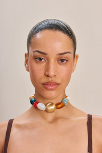 An assorted bead choker necklace with a gold-toned adjustable chain. — Assorted beads — Choker length — Lobster clasp — Gold-toned chain COMPOSITION AND CARE 100% BRASS TRIM: 100% PLASTIC