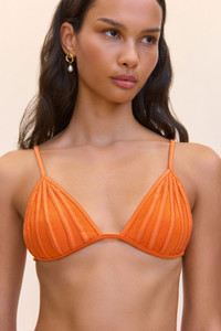 A triangle bikini top with ribbed detailing and an adjustable tie back. — Unpadded — Shimmer tricot — Double lined — Tie back closure — Wear with Mina Bikini Bottom SIZE & FIT NOTES Model is 5'11" and wearing a Size Small COMPOSITION AND CARE p.p1 {margin: 0.0px 0.0px 0.0px 0.0px; font: 13.0px 'Helvetica Neue'} SELF: 80% POLYAMIDE 20% ELASTANE