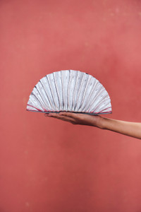 Nala is an artfully inspired mini clutch. The fan-style of this shell-shaped clutch is created by pleating crumpled metallic leather. The shell shaped silhouette comes in eye-catching shiny materials, and has an invisible magnetic closure that keeps all of your essentials securely inside. A perfect accessory for any Cult Gaia outfit. FIT NOTES Magnetic snap closure at top Can fit phone, small wallet, keys Fully lined COMPOSTION AND CARE 1.57" x 5.43" x 10.51" 100% Cow Leather LINING: 90% Polyester, 10% Polyurethane