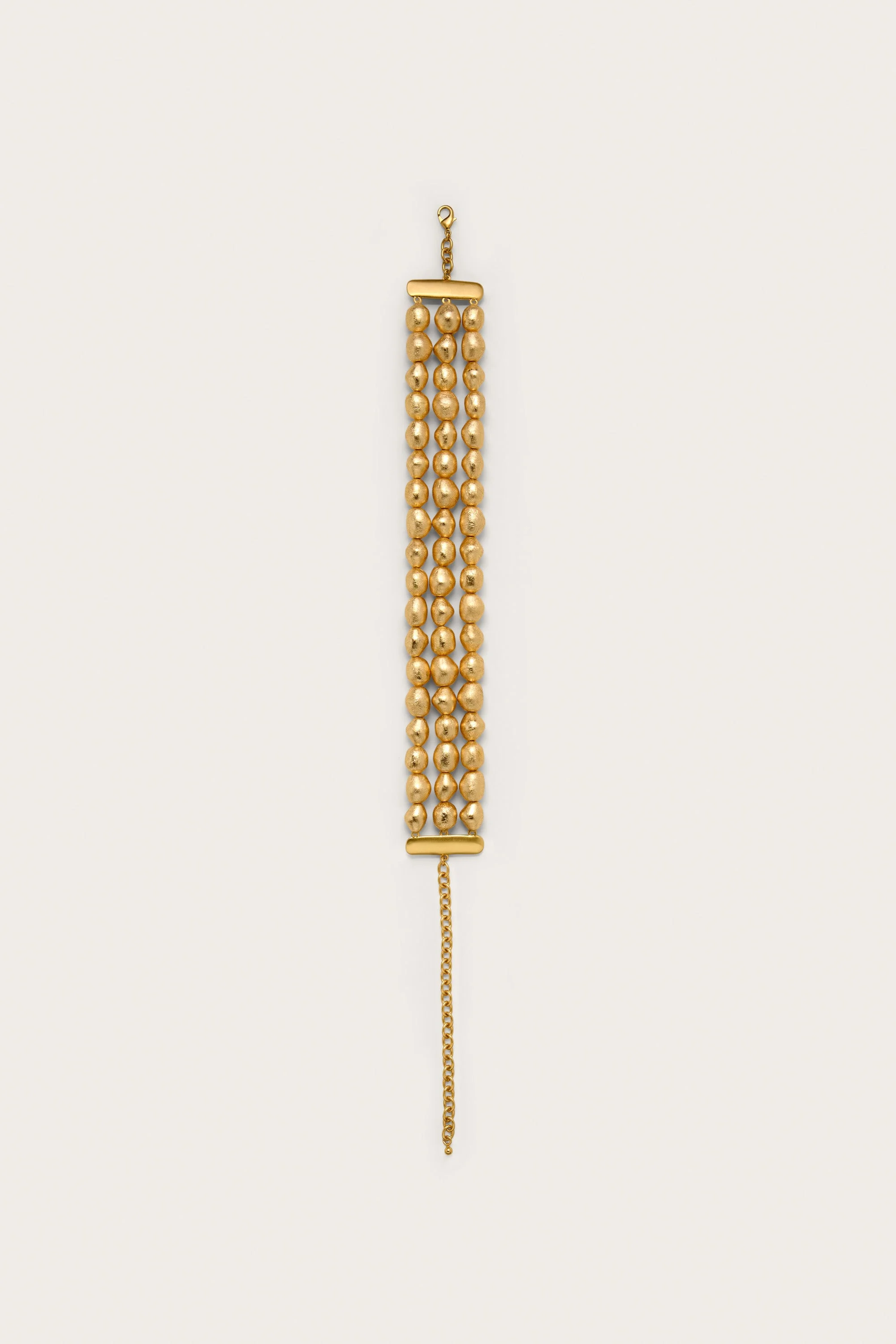 A choker style necklace made of rows of gold foiled wood beads. — Clasp closure — Choker style — Foiled wood beads — Gold-toned trim COMPOSITION AND CARE 100% GOLD FOILED WOOD, 100% ZINC ALLOY PLATED METAL
