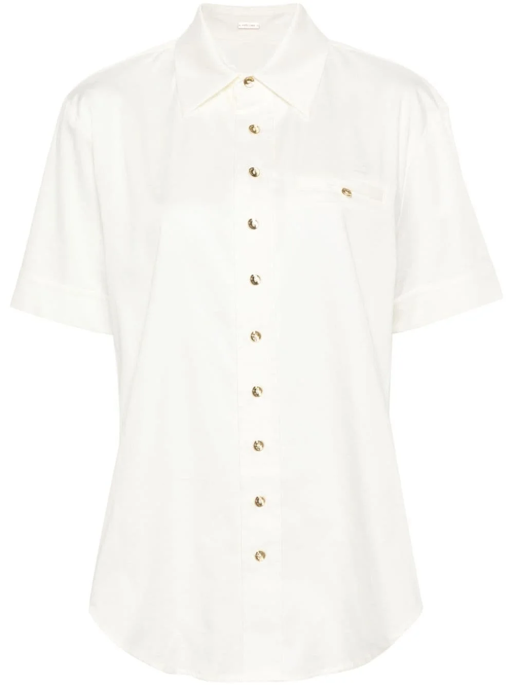 Rayn short-sleeved shirt Highlights - Off-white - Stretch-cotton - Gold-tone buttons - Box-pleat detail - Classic collar - Front button fastening - Short sleeves - Button-fastening chest pocket - Curved hem Imported Composition Cotton 98%, Spandex/Elastane 2% Washing instructions Machine Wash