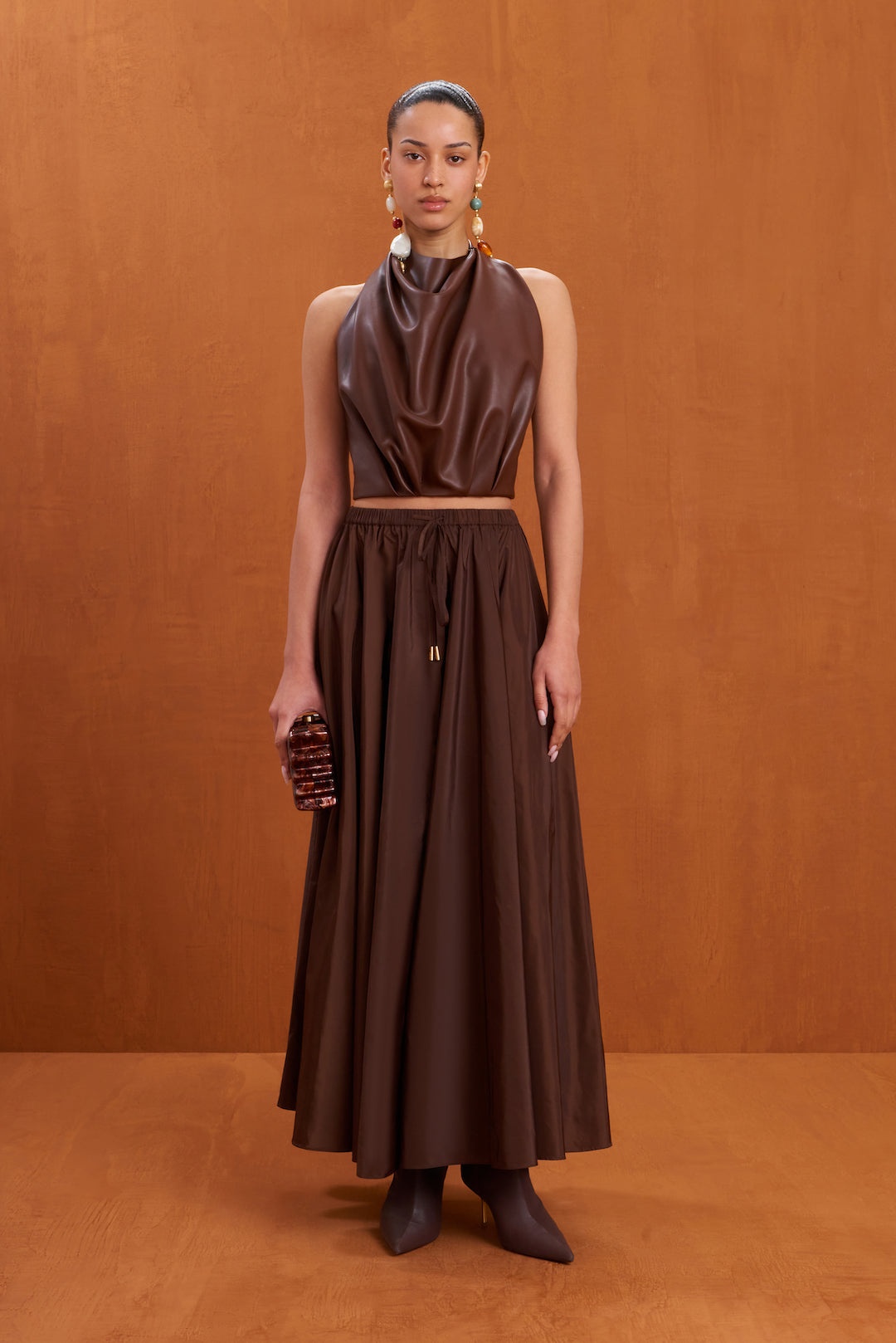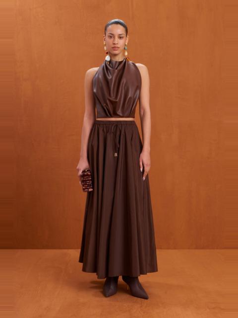 A lightweight taffeta maxi skirt with an adjustable drawstring waist and pockets. — Full length — Voluminous skirt — Side seam pockets — Drawstring elastic waist SIZE & FIT NOTES Model is 5'10" and is wearing a size Small COMPOSITION AND CARE 100% POLYESTER