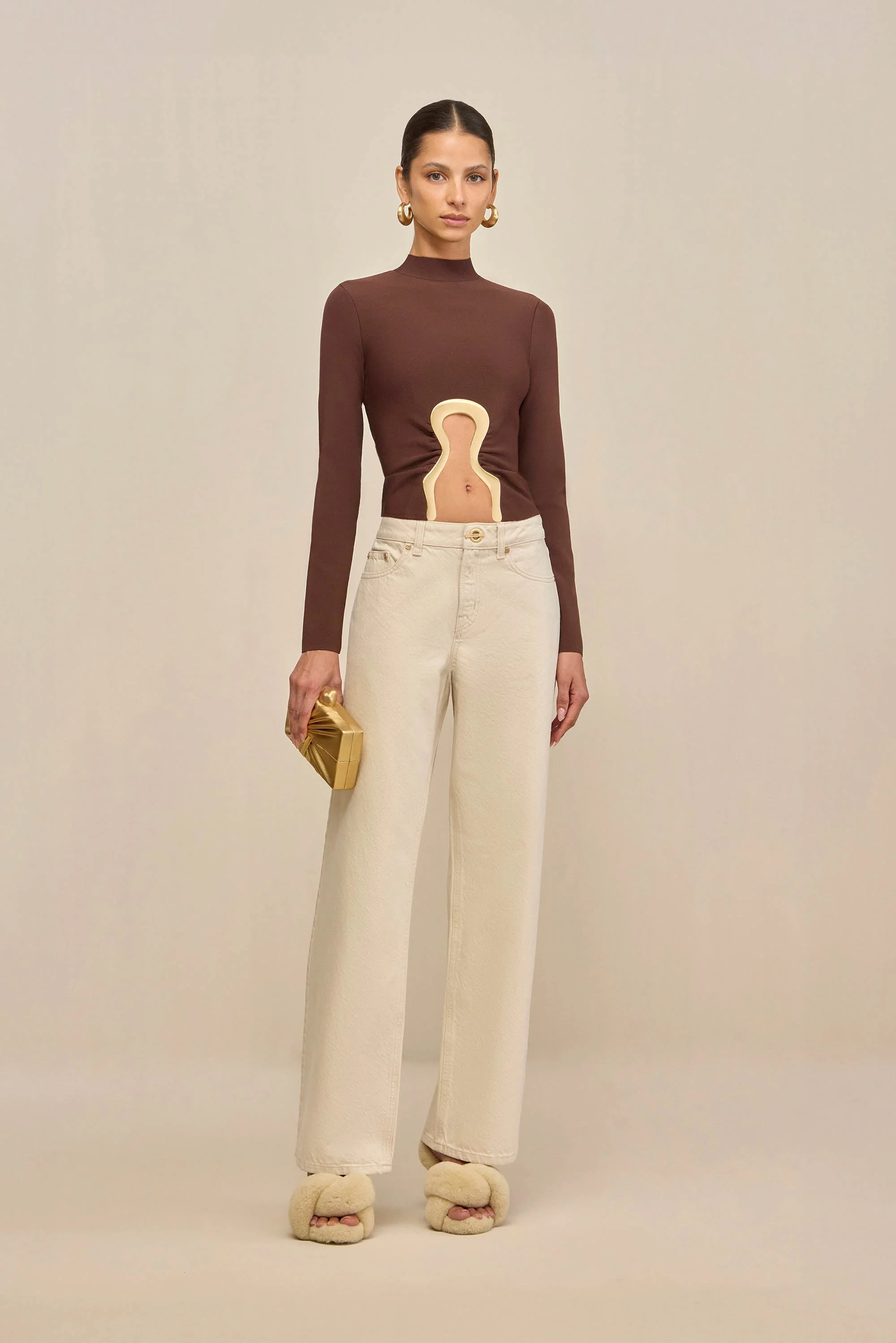 A straight leg off white denim pant with a toggle closure and a low rise fit. — Low rise — Toggle closure — Straight leg — Cotton denim SIZE & FIT NOTES Model is 5'10" and wearing a size 26 COMPOSITION AND CARE 100% COTTON Machine Wash Cold with Like Colors, Do Not Bleach, Tumble Dry Low or Dry Flat, Iron Medium Temperature, Can Be Dry Cleaned Using Any Solvent Except Trichloroethylene