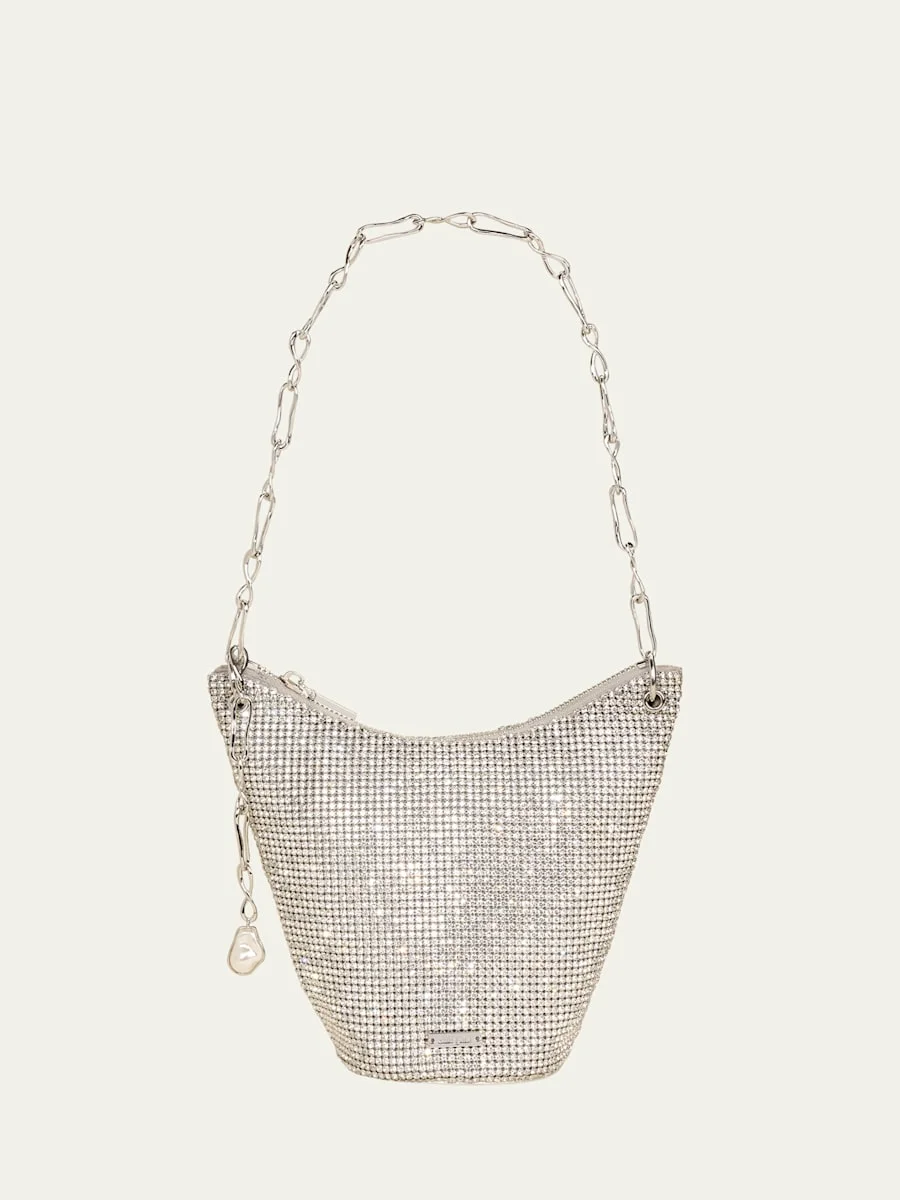 Cult Gaia "Elisa" wristlet in rhinestone fabric Detachable chain wristlet strap Can be worn as a shoulder bag or wristlet Zip top Lining: Polyester Approx. 5.9"H x 4"W Polyester Spot clean Imported Online Inquiries: BGS21_V6GWR| Store Inquiries: #4988313