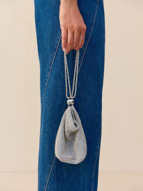 Rue is an elegant wristlet rendered in gold toned trim and shiny glass beads. Her Sand Dollar hues exude how precious this bag is. Her gold-toned chain makes Rue easy to carry. She snaps close to keep your essentials safe. Brighten your wrist with Rue. SIZE & FIT NOTES WIDTH: 0.70" HEIGHT: 6.10" LENGTH: 6.90" Rhinestone Mesh Twisted Rop Chain Strap W/ Anchor Magnet (This Allows Both Sides Of The Bag To Join) Zipper Closure W/Logo Zipper Pull Microsuede Lining COMPOSITION AND CARE 100% Glass Lining: 90% Polyester10% Polyurethane