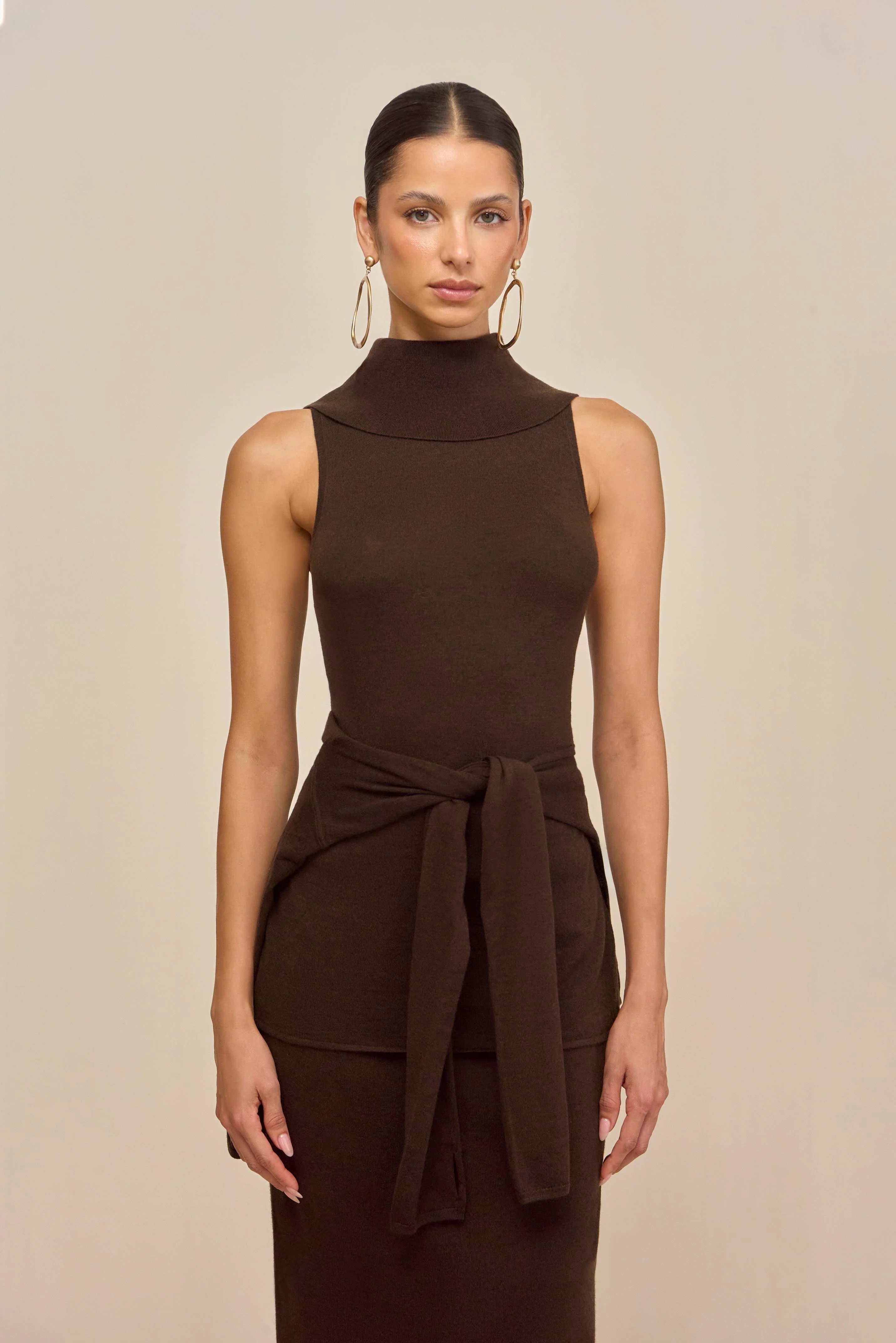 A luxurious merino knit tunic top with a relaxed fit and mock neck. — Tunic silhouette — Merino blend yarn — Mock neckline — Wear as a set with the Nadine Skirt SIZE & FIT NOTES Model is 5'10" and wearing a size Small COMPOSITION AND CARE 30% WOOL, 25% NYLON, 45% ACRYLIC Dry Clean Only
