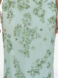 Sai skirt Highlights - Mint green - Concealed side zip fastening - Floral embroidery - Bead embellishment - High-waisted Imported Composition Silk 100%, Sequin 100%