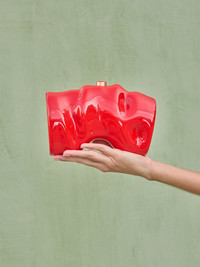 Scrunch clutch bag Highlights - Bright red - Top clasp fastening - Main compartment - Engraved logo - Glossy finish Imported Composition Outer: Acrylic 100%, Polyester 90%, Polyurethane 10% SIZE & FIT Measurement DEPTH 3 in(7.6 cm) HEIGHT 5 in(12.7 cm) WIDTH 8.5 in(21.5 cm)