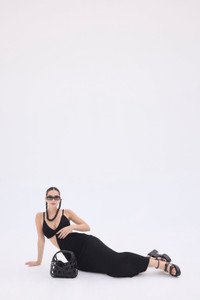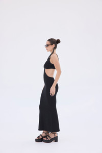 The Serita is back. She is a cutout woven knit maxi dress. Thoughtful cutouts shape your figure, highlighting the small of your waist. Bra silhouette back with a bare all open back. Pair with the Solene Bag and bare feet and you're ready for a night of dancing on the beach. The dress is worth the hype. FIT NOTES Adjustable halter neck Cutouts at sides Double-layered top Center front twist Stretches when on hanger, fold only For largest busts, we recommend sizing up. This style tends to run small COMPOSTION AND CARE Length: 58 3/4" 77% Cotton, 23% Polyester Model is 5'10" and wearing size Small