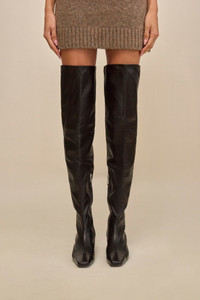 A classic knee high leather boot featuring a pointed toe and kitten heel. — Knee high — Leather — Pointed toe — 1.97" heel height SIZE & FIT NOTES 50MM HEEL HEIGHT COMPOSITION AND CARE UPPER: 100% SHEEP LEATHER, OUTSOLE: 100% RECONSTITUTED LEATHER Gently wipe leather with a soft, dry or slightly damp cloth to remove dirt and dust. For deeper cleaning, use a leather-specific cleaner with a soft cloth. Do not use water or household cleaners.