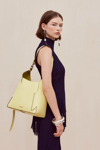 Simona is an sculptural shoulder bag in Lemon Sorbet hues. She plays with the folding and tucking her 100% cow leather exterior. She is lined to safely store your belongings. She is easy to wear over your shoulder with her thin strap. A gold-toned Cult Gaia signature on the front adds a touch of shine. FIT NOTES WIDTH: 9.80" LENGTH: 9.40" Smooth Leather Body Lined COMPOSTION AND CARE 100% Cow Leather Lining: 100% Polyurethane