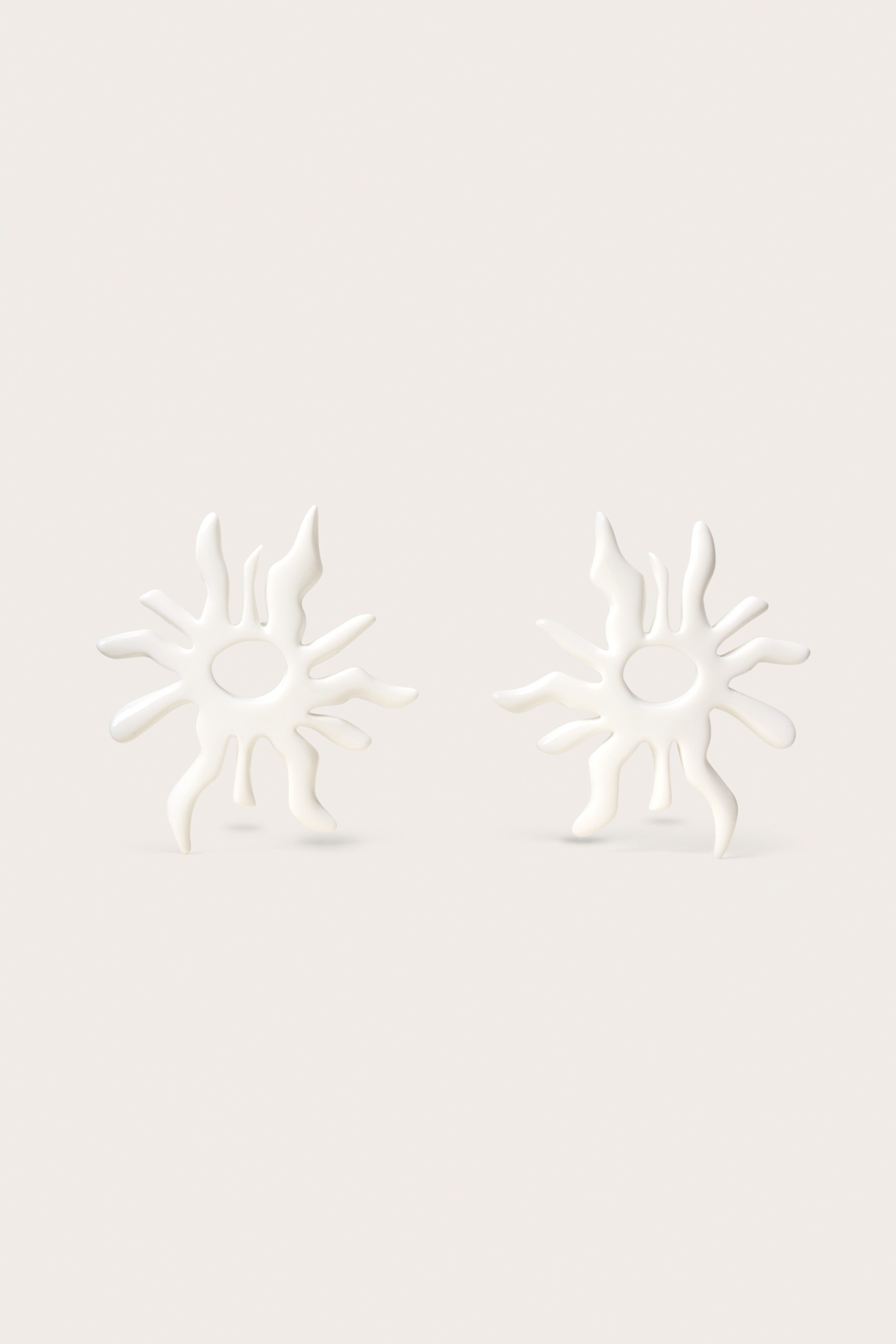 A plated metal sunburst post-style earring. — Objet d'art — Plated metal — Post earring SIZE & FIT NOTES 0.25" W x 2.50" H x 2.50" L COMPOSITION AND CARE 100% ABS