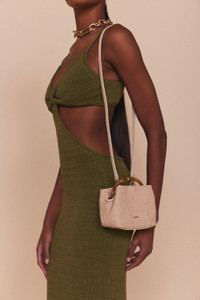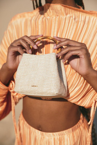Ultra miniature in size, the Solene Bag exudes femininity with her delicate figure. Constructed of richly neutral raffia and featuring our signature bamboo top handle, this mini-bag is ready to elevate any summer look with a sense of effortless sophistication. The additional leather crossbody strap only adds to its duality. FIT NOTES 7.5" x 4.75" x 3" Body: 50% Cotton, 50% Polyamide Lining: 90% Polyester, 10% Polyurethane Handle: 100% Bamboo COMPOSTION AND CARE Most of our orders are shipped 24-48 hours from purchase pending availability and credit verification. Once your order is shipped, we estimate you will receive your order within 5-7 business days of its ship date. If you need your item(s) sooner, please select the expedited shipping option. Shipping times may vary, but rest assured we work our hardest to get you your order as quickly as possible. Please note all items noted as final sale are not eligible for exchange or return. We currently do not accept exchanges or returns for international customers at this time. If you have any questions, please be sure to reach out to hello@cultgaia.com .