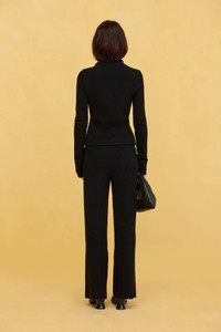 A ribbed knit pant crafted from a wool and cashmere blend yarn with an elasticated waistband and slight flare silhouette. — High rise — Elastic waistband — Wool and cashmere blend — Wear with the Araia or Merida Sweater SIZE & FIT NOTES Model is 5'10" and is wearing a size Small COMPOSITION AND CARE 70% WOOL 30% CASHMERE