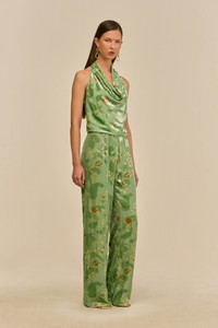 A bias cut sleek silk burnout pant designed to hit at the mid to high waist. — Silk burnout fabric — Mid to high waist — Relaxed fit — Slip on style — Wear with the Augusta Top SIZE & FIT NOTES Model is 5'10" and wearing a size Small COMPOSITION AND CARE 80% VISCOSE 20% SILK Dry Clean Only
