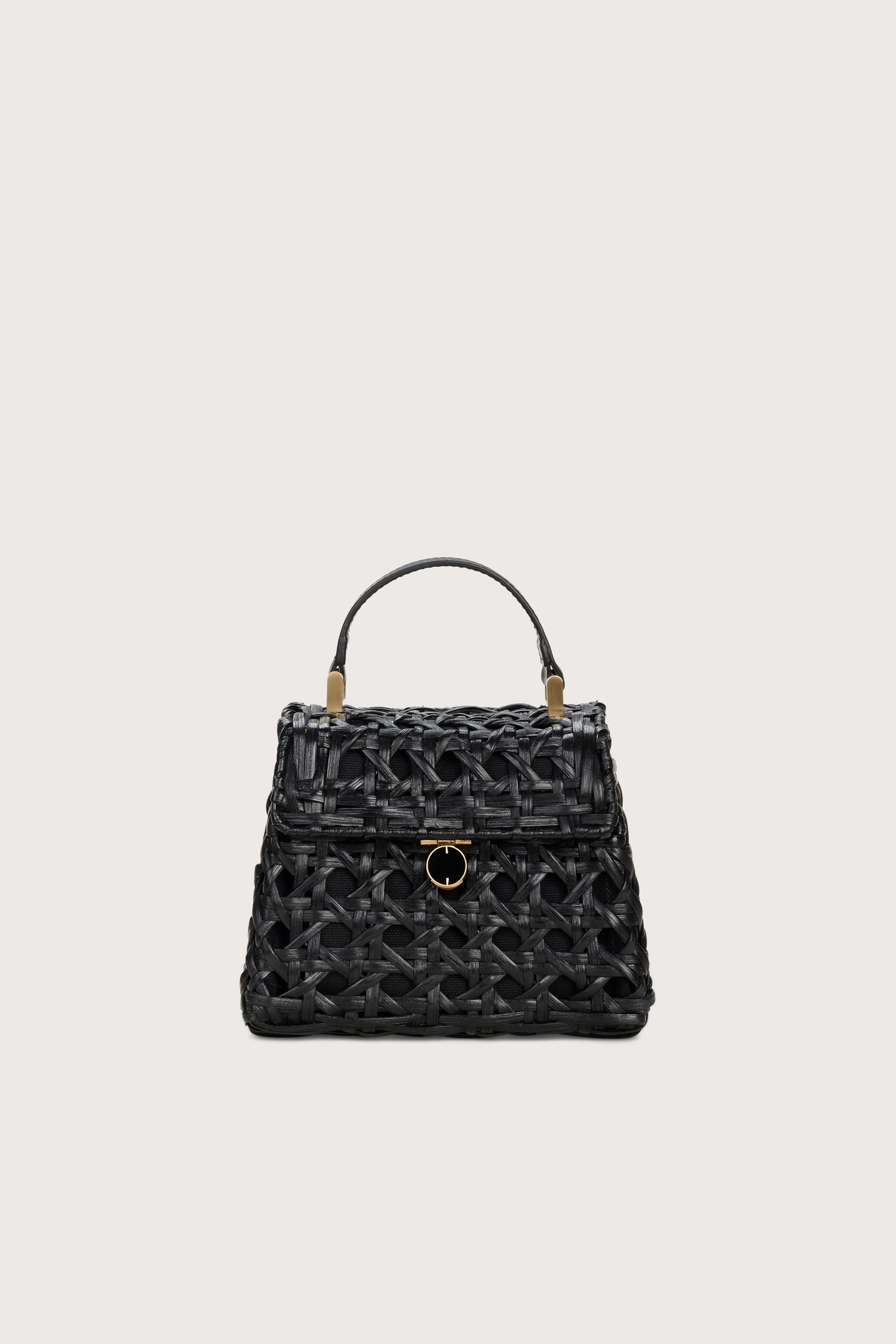 Preorder - Estimated Ship Date Between February 25th and March 10th A wicker structured top handle designed with micro suede lining and a coordinating smooth leather top handle and crossbody strap. — Magnetic snap closure — Detachable smooth leather crossbody strap — Feet on the bottom FIT NOTES WIDTH: 3.50" HEIGHT: 5.90" LENGTH: 7.90" COMPOSTION AND CARE 100% Rattan Trim: 100% Cow Leather