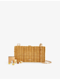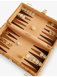 PRODUCT DETAILS - Cult Gaia rattan clutch bag - 100% rattan - Clasp fastening - Rectangle shape, gold-toned chain-link shoulder strap, logo plaque at front, leather backgammon board at interior, includes game pieces and small dust bag pouch - Height 13cm, width 25cm, depth 8cm - Wipe with a clean, dry cloth Ref: R04457972