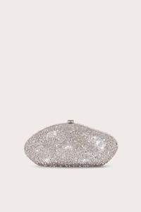 A sculptural clear clutch encrusted with sparkling rhinestones. — Silver hardware clasp — Flat bottom — Sculptural dents — Can fit an iPhone SIZE & FIT NOTES 3.31" W x 5.12" H x 7.09" L COMPOSITION AND CARE 100% ACRYLIC; 100% GLASS; HW: 100% ZINC ALLOY