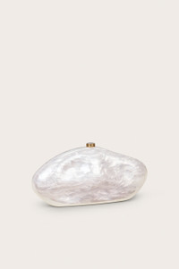 The Caldera Clutch is a sculptural wonder. Her ultra-shiny pearlized shell gives off a beautiful reflection from the textured dents and forms of the bag. A gold-toned clasp at the top keeps this safely closed. Her flat bottom is made to display this work of art. SIZE & FIT NOTES 3.30" W x 5.10" H x 11" L COMPOSITION AND CARE 100% ABS