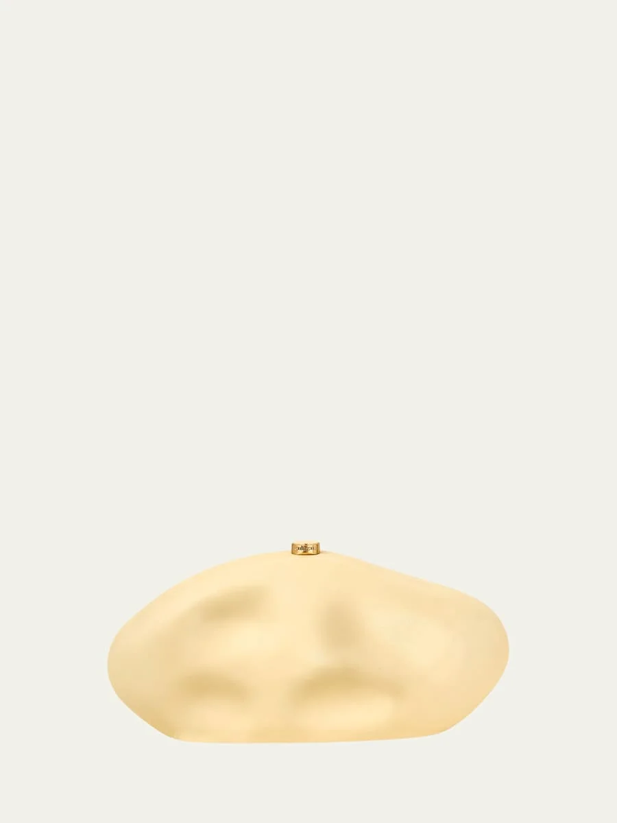 Cult Gaia "The Caldera" leather clutch bag with sculptural dents Framed top with clasp closure Lining: Polyester Approx. 5.1"H x 4.4"W x 1.6"D Spot clean Imported