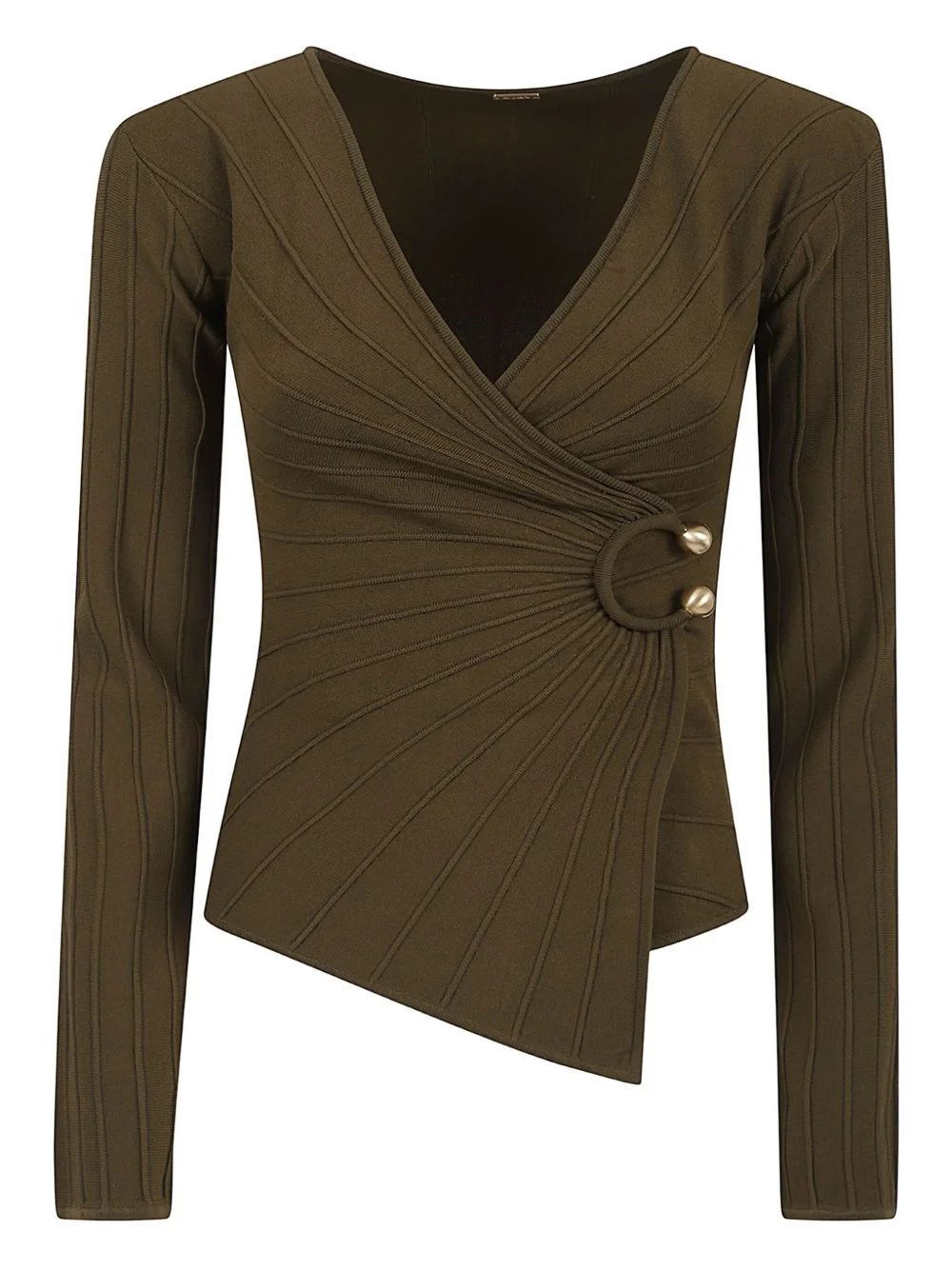 Collette ring-detail top Highlights - Green - Ribbed knit - V-neck - Long sleeves - Ring detail - Button embellishment Imported Composition Recycled Viscose 83%, Polyester 17% Washing instructions Hand Wash
