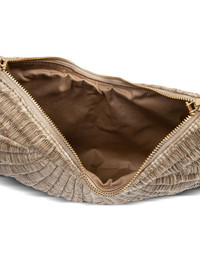 Ubah handbag Highlights - Beige - Zip-fastening compartment - Pleat detailing - Round frame Imported Composition Leather 100% SIZE & FIT Measurement HEIGHT 6.69 in(17 cm) WIDTH 13.38 in(34 cm)