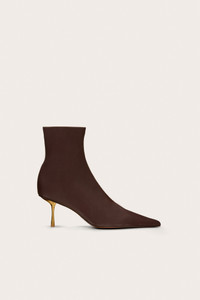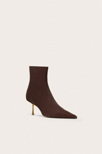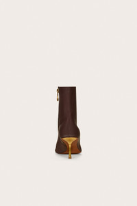 A pointed toe lambskin leather bootie with a silver-toned metal stiletto heel. — Smooth leather — Pointed toe — Metal heel — 2.75" heel height SIZE & FIT NOTES 70MM HEEL HEIGHT COMPOSITION AND CARE UPPER: 100% LAMB OUTSOLE: 100% TUNIT HEEL: 60% ABS, 40% METAL