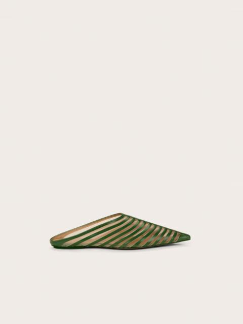 A pointed toe flat fashioned out of strips of mesh and leather. — Comfortable cushioned footbed — Mesh and leather strips — Pointed toe — Slip on style SIZE & FIT NOTES 5MM HEEL HEIGHT COMPOSITION AND CARE UPPER: 100% GOAT LEATHER, TRIM: 100% NYLON, OUTSOLE: 100% RUBBER