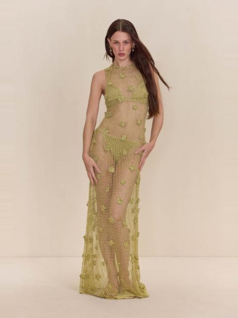Preorder - Estimated Ship Date is Between June 2nd and June 16th A floor-length knit dress that doubles as a coverup, adorned with intricate crochet flowers throughout. — Sheer — Off white knit yarn — Acts as a coverup — Crochet flower details SIZE & FIT NOTES Model is 5'10" and wearing a size S COMPOSITION AND CARE 60% VISCOSE 40% POLYETHYLENE TEREPHTHALATE