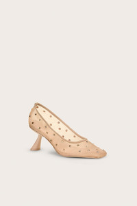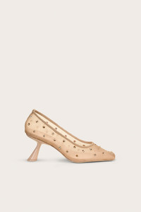A pearl-adorned mesh pump with a comma kitten heel. — Mesh pump — Pearl details — Comma kitten heel — 3.15" heel height SIZE & FIT NOTES 80MM HEEL HEIGHT COMPOSITION AND CARE UPPER: 100% POLYESTER, 100% GLASS STONES, OUTSOLE: 100% LEATHER, HEEL: 100% ABS