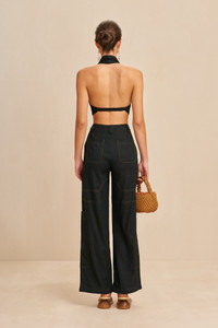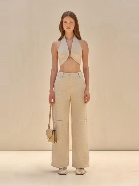 The Wynn Pant is the Gaia update on the cargo pant. The Wynn features a lower rise with functional pockets. It has an adjustable cord with a stopper inside the wide leg at the ankle. Made from a lightweight linen silk blend, this convertible pant can be worn wide leg or fitted with . Includes a concealed hook and zip fastening at the front for easy closure. COMPOSITION AND CARE 28% Silk, 72% Linen Dry Clean Only Model is 5'10" and wearing a size Small