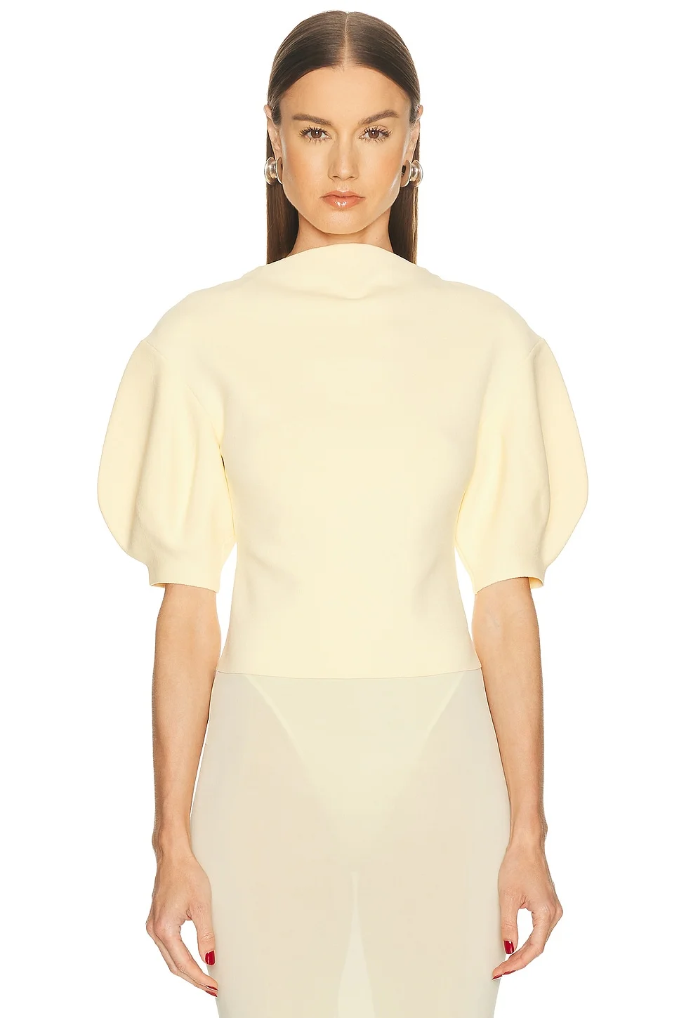 Details - 53% rayon, 46% nylon, 1% spandex - Hand wash - Pull-on styling - Mockneck design - Puff sleeves - Cropped fit - Heavyweight ponte fabric - Item not sold as a set - Made in China - Our Style No. GAIA-WS193 - Manufacturer Style No. SWTTP35262YV2418