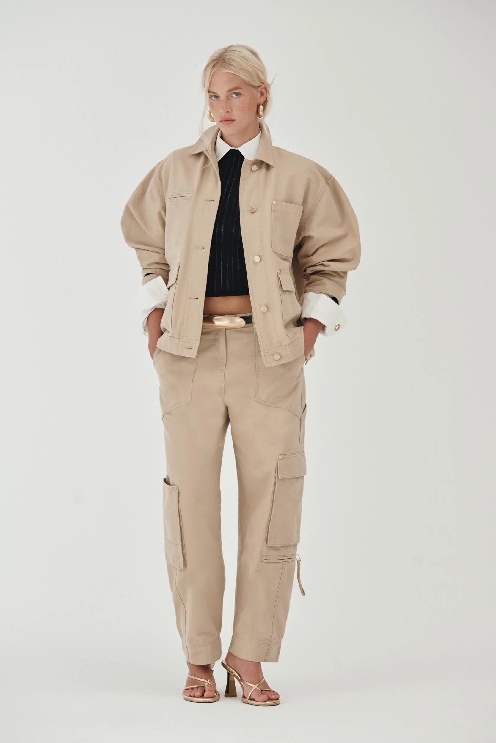 A utility inspired cargo pant, designed with a barrel leg, pocket details and a low rise fit. — Low rise — Barrel leg — Functional pockets and zippers — Wear as a set with the Vega Jacket SIZE & FIT NOTES Model is 5'10" and wearing a size 4 COMPOSITION AND CARE 100% COTTON Machine Wash Cold with Like Colors, Do Not Bleach, Tumble Dry Low or Dry Flat, Iron Medium Temperature, Can Be Dry Cleaned Using Any Solvent Except Trichloroethylene