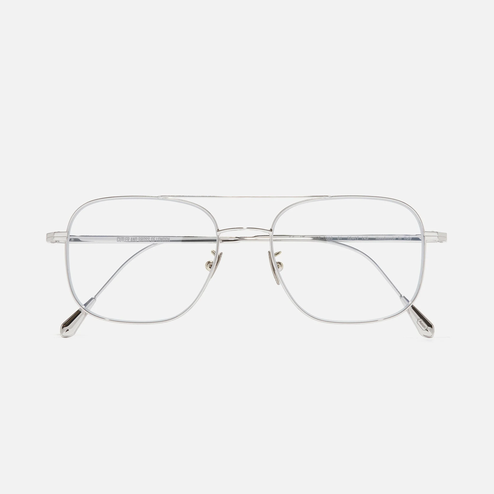 With lightness and functionality as its core, the AUOP 0001 is a contemporary and easy-wearing metal pantos. An inspired renewal of our original 1990s model 0306, this frame allows for uncompromising fit and comfort alongside sharp stylistic features. Available plated in either 18K White Gold Rhodium, 18K Gold, 18K Rose Gold, or a combination of precious metals Rose Gold 18K + Rhodium 18K. Details - Handcrafted in Italy by expert craftspeople, read more about our craftsmanship story - New Temple Tip inscribed with 'Aurum' - Hypoallergenic Nosepads - Galvanised Precious Metal Finish - Need help? Read our full Glossary of Terms Size & Fit SKU: AUOP-0003-52-01 Frame shape: Aviator Lens width (mm): 52 Temple length (mm): 145 Bridge width (mm): 17