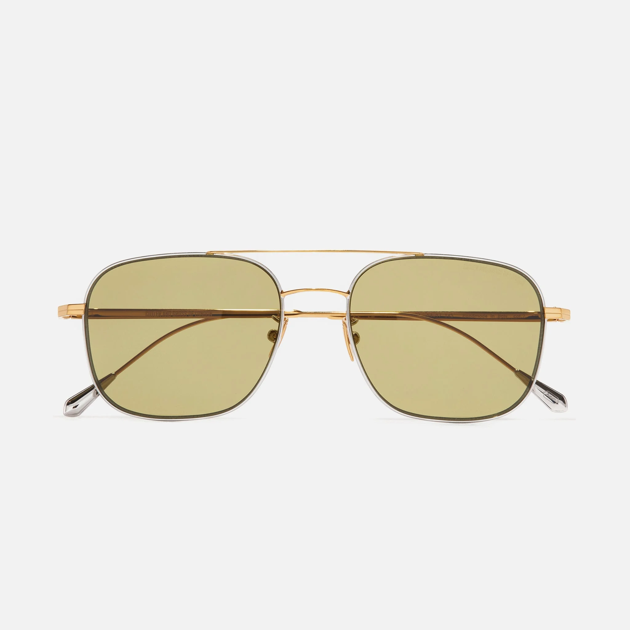 Available plated in either 18K White Gold Rhodium, 18K Gold, 18K Rose Gold, or a combination of precious metals and Yellow Gold 24K + Rhodium 18K the AUSN 0003 elevates a classic Cutler and Gross shape first popularised in the 1970s. Featherlight in its construction, the flatline temple provides a slimline silhouette without compromising on visual impact and the muted ZEISS Sunlens colourways of Solid Brown, Khaki Blue and Grey emphasise the precious metal tones. Details - Handcrafted in Italy by expert craftspeople, read more about our craftsmanship story - New Temple Tip inscribed with 'Aurum' - Hypoallergenic Nosepads - Galvanised Precious Metal Finish - Need help? Read our full Glossary of Terms Size & Fit SKU: AUSN-0003-54-04 Frame shape: Aviator Temple length (mm): 145 Lens width (mm): 54 Bridge width (mm): 17