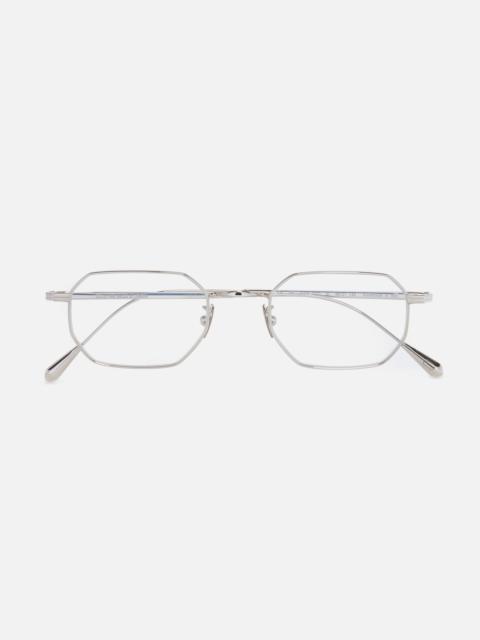 The hexagonal 0005 optical is grounded in our 1990s archive, shaped to a slender profile with a double-curved nose bridge. Rounded corners and high-set lugs lend dimension to the design, which is crafted from ultra-light precious metals. Available in 18K White Gold Rhodium, 18K Gold,18K Rose Gold, and a combination of 24K Yellow Gold and 18K Rhodium. Details - Handcrafted in Italy by expert craftspeople, read more about our craftsmanship story - Double-curved nose bridge - Adjustable nose pads - Engraved logo inside temple - Need help? Read our full Glossary of Terms Size & Fit SKU: AUOP-0005-48-01 Frame shape: Round Lens width (mm): 48 Temple length (mm): 145 Bridge width (mm): 21