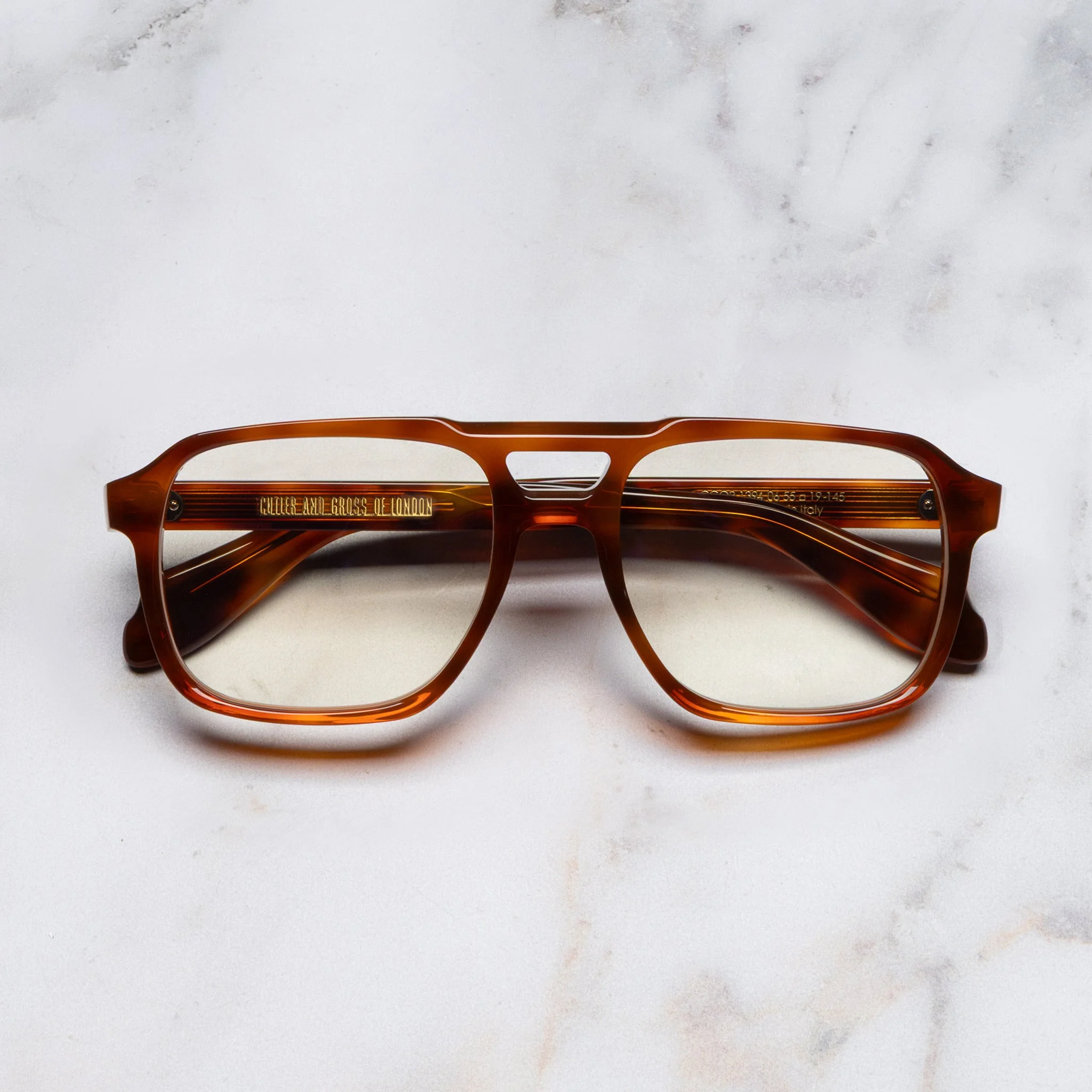 An archive Cutler and Gross frame from the 70s laid the foundations for the 1394 optical. It is handcrafted from acetate to a distinguished profile with squared lenses and a double bridge. Polished Compass Star pins detail the temples. Details - Compass Star temple pins - 5-barrel hinges - Fender temples - Deco core wire - Gold-foil logo on inner temple - Handcrafted in Italy by expert craftspeople, read more about our craftsmanship story Size & Fit SKU: CGOP-1394-55-06 Frame shape: Aviator Lens width (mm): 55 Temple length (mm): 145 Bridge width (mm): 19