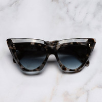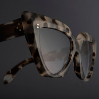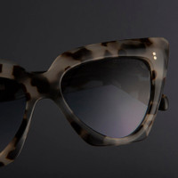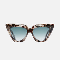 Sculpted with a high stepped browline that plunges to a rounded base, the 1407 is a magnified take on the cat-eye sunglass. The split-layer construction adds luminosity to the design, which is detailed with house signatures: Hazard core wire and Compass Star pins. It's sculpted with bevelled edges and culminates in Fender tips. Details - Handcrafted in Italy by expert craftspeople, read more about our craftsmanship story - Compass Star frontal and temple pins - 7-barrel hinges - Hazard core wire - Gold-foil logo inside temple - Fender temple tips - Need help? Read our full Glossary of Terms Size & Fit SKU: CGSN-1407-55-02 Frontal width (mm): 160 Temple length (mm): 145 Lens width (mm): 55 Bridge width (mm): 15