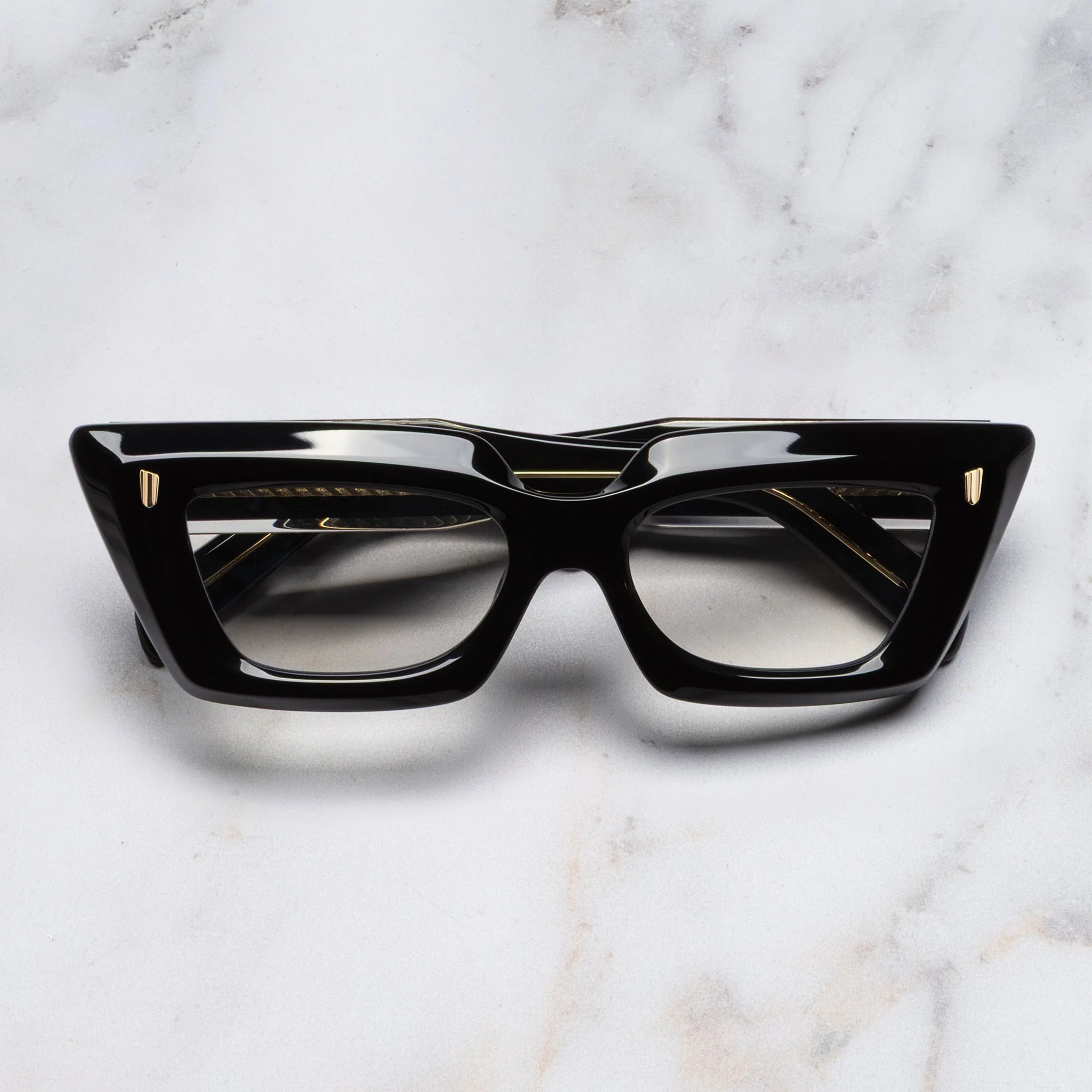 The 1408 frame transforms 90s optics into the here and now. It's shaped into a mini cat-eye silhouette with a split-layer construction that juxtaposes pigmented Black acetate with crystal edges. Chamfering adds depth to the design, which is accented with polished Oyster and Compass Star pins. Details - Handcrafted in Italy by expert craftspeople, read more about our craftsmanship story - Vertical Oyster frontal pins - 7-barrel hinges - Compass Star temple pins - Hazard core wire - Gold-foil logo inside temple - Minimal temple tips - Need help? Read our full Glossary of Terms Size & Fit SKU: CGOP-1408-51-01 Lens width (mm): 51 Temple length (mm): 145 Bridge width (mm): 17