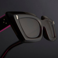 The 1408 sunglass brings a fresh perspective to 90s optics: think Madonna's 'Into The Groove' with added edge. It's shaped into a mini cat-eye silhouette that's milled and chamfered, adding depth and luminosity to the design. Oyster pins detail the front, while Hazard core wire structures the temples. Details - Handcrafted in Italy by expert craftspeople, read more about our craftsmanship story - Vertical Oyster frontal pins - 7-barrel hinges - Compass Star temple pins - Hazard core wire - Gold-foil logo inside temple - Minimal temple tips - Need help? Read our full Glossary of Terms Size & Fit SKU: CGSN-1408-51-01 Temple length (mm): 145 Lens width (mm): 51 Bridge width (mm): 17
