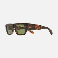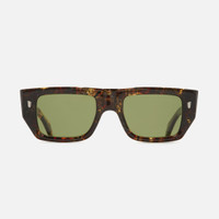 A square frame with heightened impact, the 1413 sunglass features a determined flat top and reversed nose bump. The chunky temples are structured with 7-barrel hinges and threaded with Cutler and Gross's signature Modernist core wire. Details - 100% UVA and UVB lenses - Oyster frontal pins - Compass Star temple pins - 7-barrel hinges - Fender temples - Modernist core wire - Gold-foil logo on inner temple - Handcrafted in Italy by expert craftspeople, read more about our craftsmanship story - Need help? Read our full Glossary of Terms Size & Fit SKU: CGSN-1413-53-02 Frame shape: Rectangle Temple length (mm): 150 Lens width (mm): 53 Bridge width (mm): 21